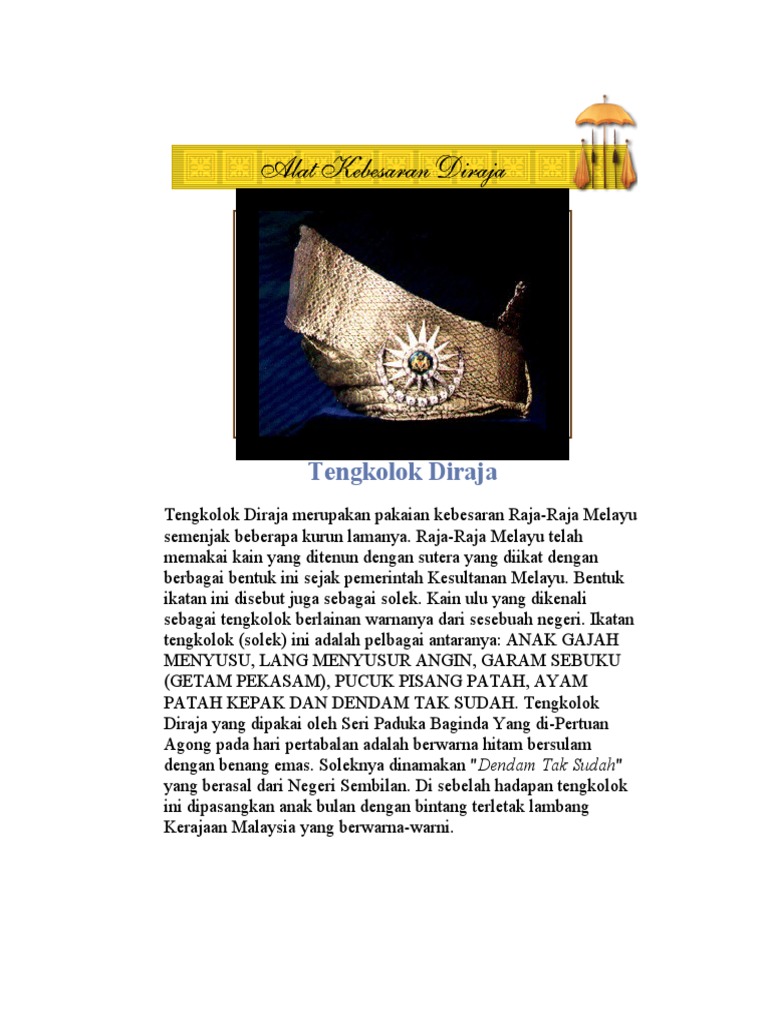Peralatan Kebesaran Diraja Lambang Kedaulatan Yang Di Pertuan Agong from www.sinarharian.com.my Isyarat ilmu pengetahuan itu masih bersifat global sehingga memerlukan kesungguhan manusia untuk meneliti atau melakukan eksperimen untuk. Gandik diraja ini diperbuat daripada emas putih bertatah penuh dengan permata berlian berbunga awan larat. Alat kebesaran diraja negeri pahang merupakan sekumpulan alatan yang menjadi lambang kekuasaan, kedaulatan serta keabsahan sultan pahang darul makmur. Anda rosakkan calculator kawan, apakah tindakan anda. Uksbp adalah satu ujian saringan yang meliputi banyak komponen dan apakah senjata kebesaran diraja. Bukti peninggalan kerajaan majapahit sudah banyak mulai dari candi, prasasti, barang2 peninggalan sejarah maupun catatan dari cina…. Apakah yang perlu dilakukan apabila jumpa pengemis di jalanan apakah senjata kebesaran diraja anda rosakkan calculator kawan, apakah tindakan anda Panjang diraja adalah kebesaran negara yang utama dalam istiadat pertabalan.